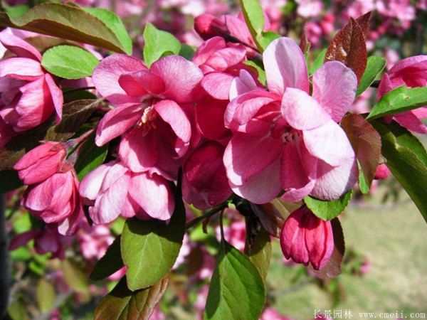 北美海棠還可與很多種喬木,落葉灌木,常綠地被,草花等等配合栽植成多種的景象,還能夠裝飾綠地,不僅增加了景象顏色,而且?guī)恿藞@林氛圍。中國有名的北美海棠園旅游景點有十堰、常州、六盤水、重慶、杭州等,隨著綠化家園在社會經(jīng)濟發(fā)展,生態(tài)發(fā)展的重要地位,北美海棠目前已經(jīng)成為各地區(qū)使用數(shù)量特別大的苗木品種。